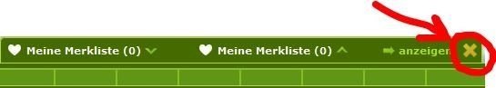 Wem die Merkliste stört, der kann sie mit dem gelben Kreuzchen wegschalten: